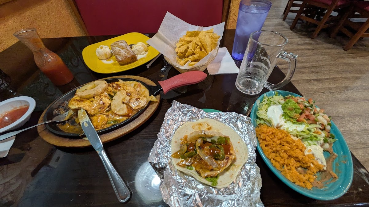 Stopped in while driving across Illinois, and very glad I did. The food was reasonably priced, and the drinks moreso. The complementary chips and salsa were some of the better I've had, and the chipotle chicken fajitas were amazing - I ate until it hurt. I also tried the cinnamon apple empanada, and it was okay - the pastry wasn't very fluffy, but still tasty.